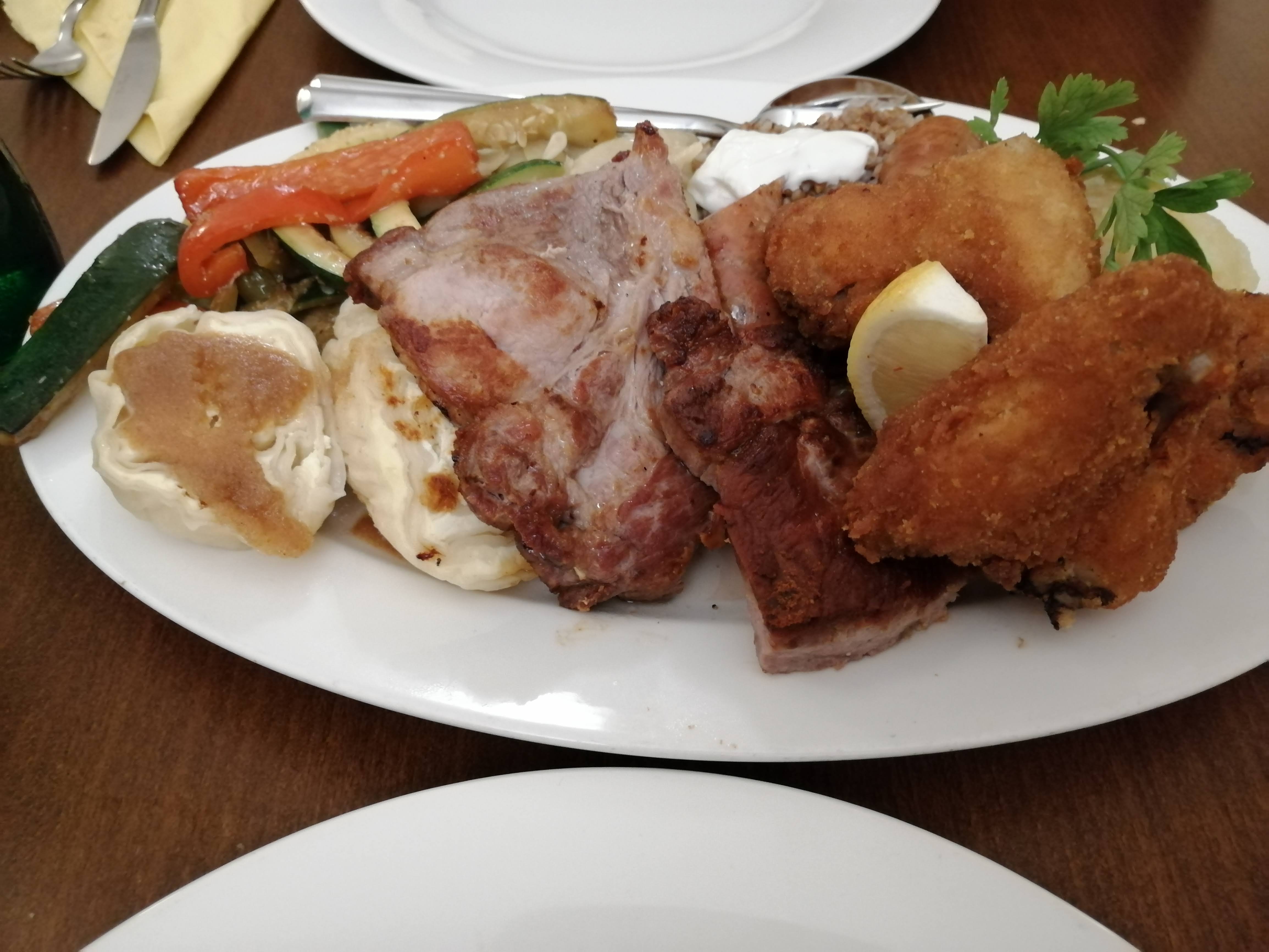 Nel pomeriggio abbiamo visitato il centro della piccola ma affascinante capitale e, sotto consiglio della Lonely Planet, abbiamo cenato al Druga Violina, uno dei ristoranti storici di Lubiana. Ti lascio il link di tripadvisor e ti consiglio comunque di prenotare, il ristorante è piccolo e molto conosciuto! Qui potrai assaporare i piatti tipici della cucina slovena, tra cui il prsut e gli struklji, ottimi sia in versione salata (in foto accanto alla carne), sia in versione dolce con il caramello.