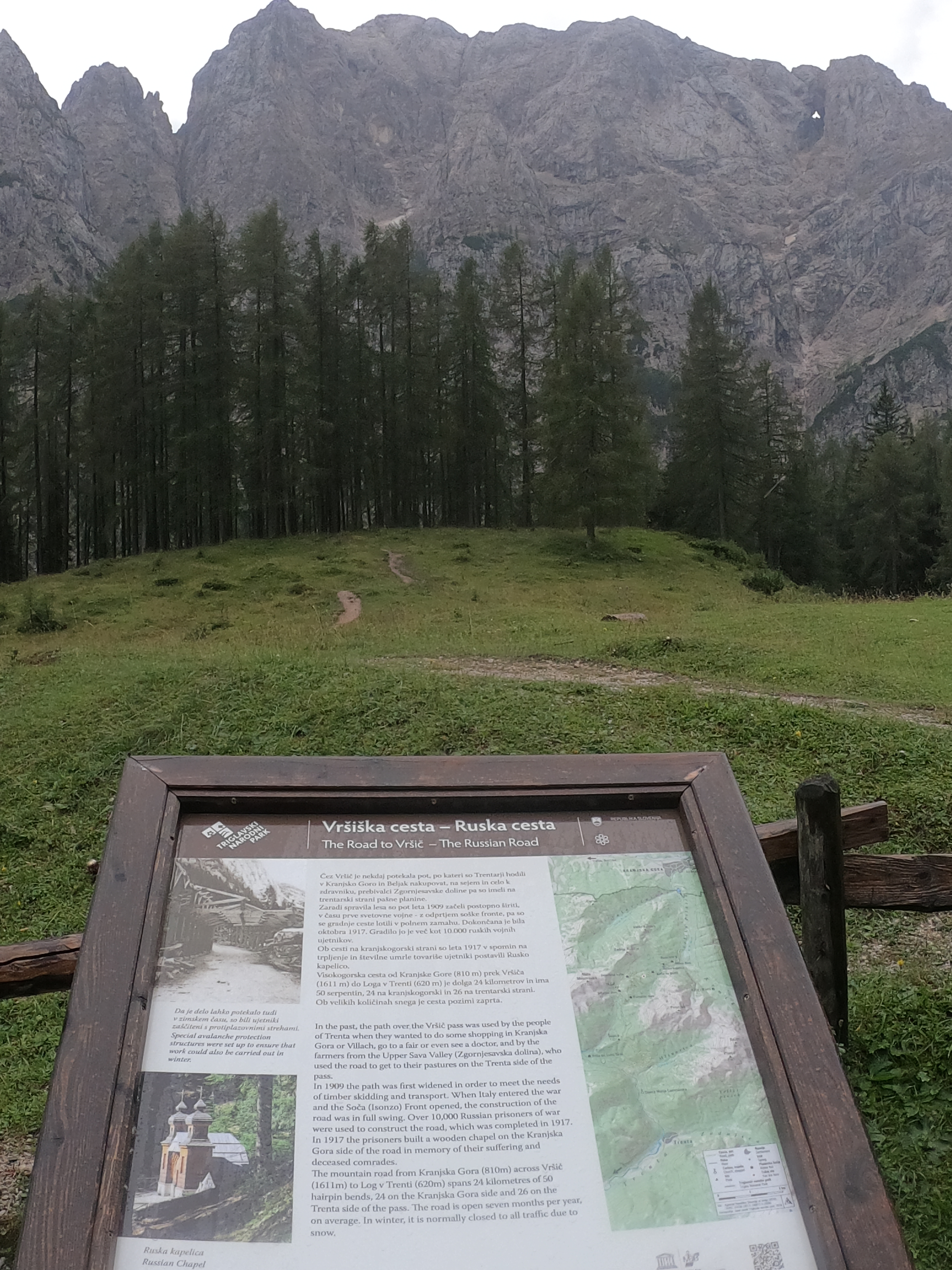 Da qui poi ci siamo diretti verso la valle dell’Isonzo, pernottando a Caporetto. Per raggiungerla abbiamo optato per la storica Ruska Cesta (strada russa, ndr) -una strada costruita durante la prima guerra mondiale da prigionieri di guerra russi, alla memoria dei quali è dedicata la Cappella russa sul versante settentrionale del passo- che da Kranjisca Gora attraversa il passo del Vrsic. Questa strada panoramica offre visuali magnifiche del parco nazionale del Triglav, ma con i suoi 50 tornanti è piuttosto pericolosa e percorribile solo in estate.