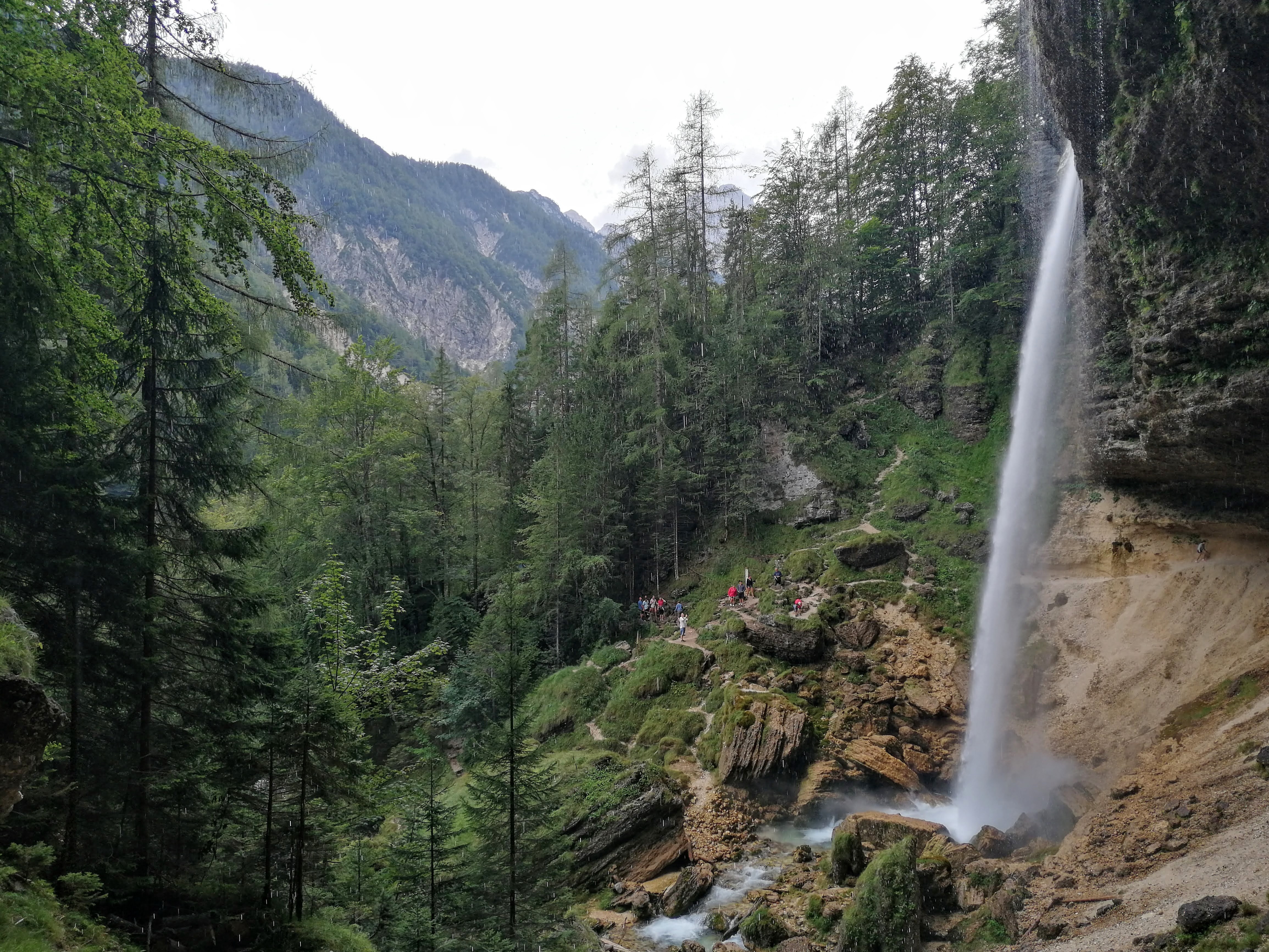 La nostra tappa seguente è stata la spettacolare cascata Peričnik, alta 52 metri, raggiungibile con un sentiero di montagna non molto impegnativo in circa un’ora di cammino. La peculiarità di questa cascata è che è possibile vederla scorrere davanti a noi grazie alla presenza di una grotta nascosta!