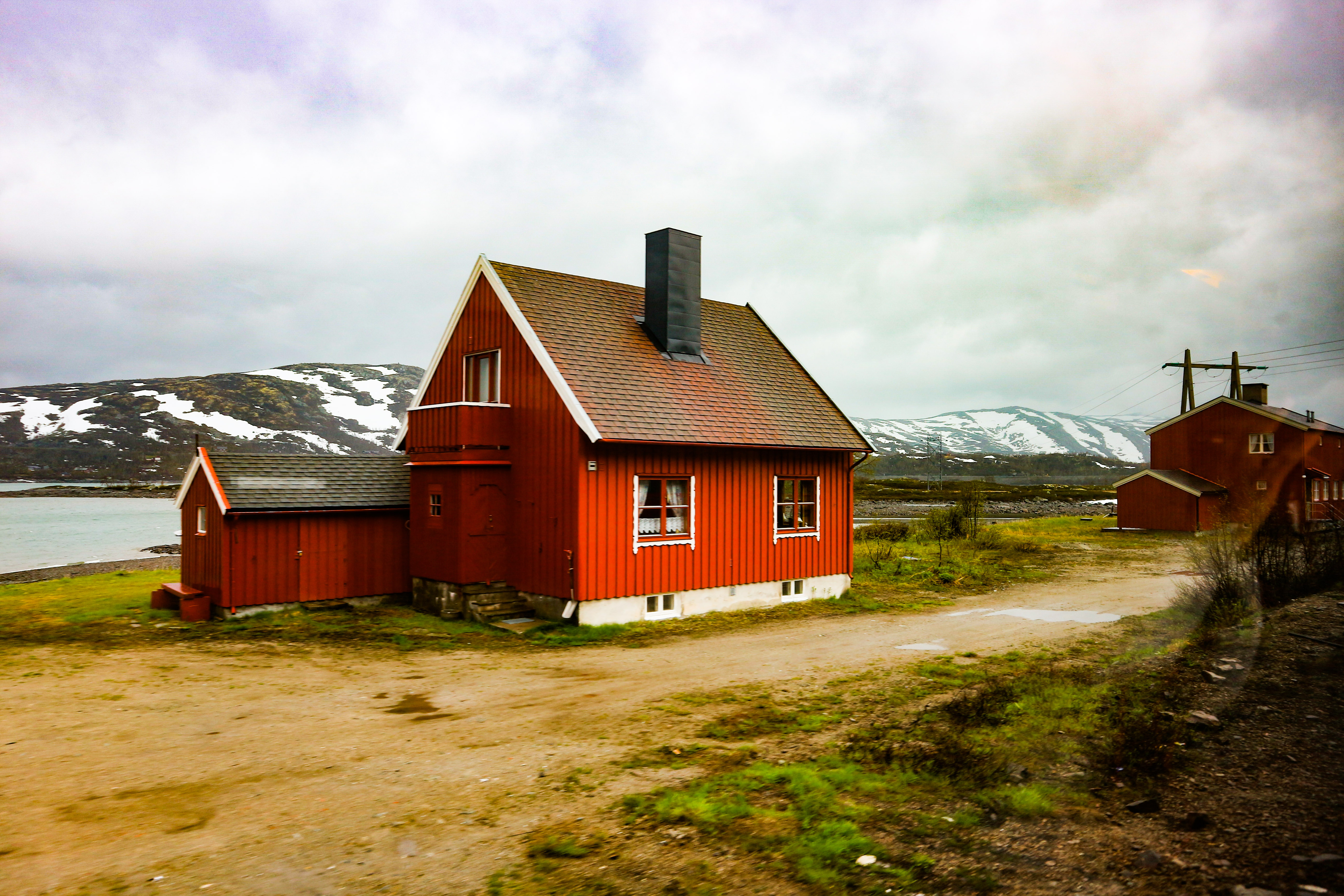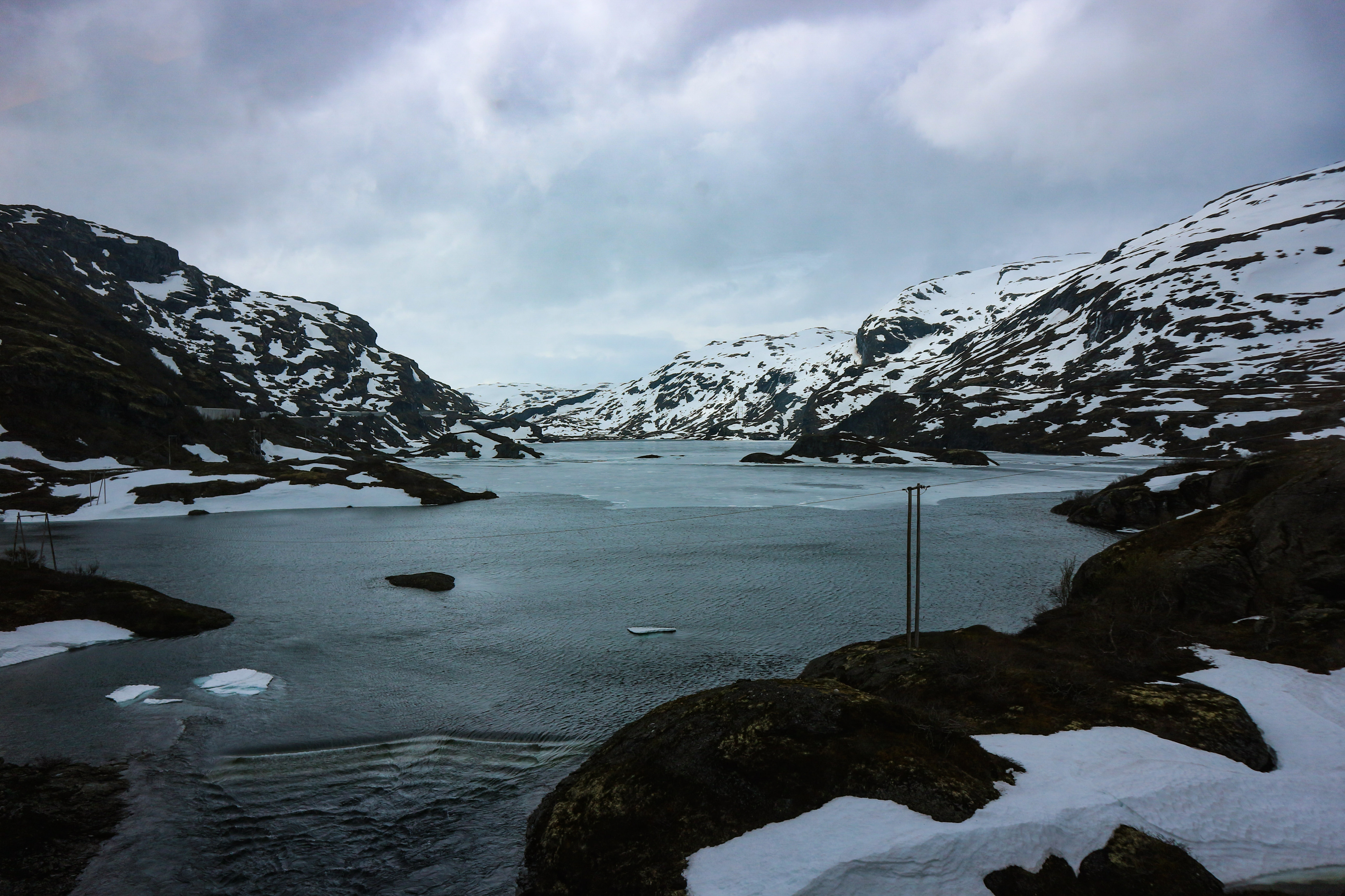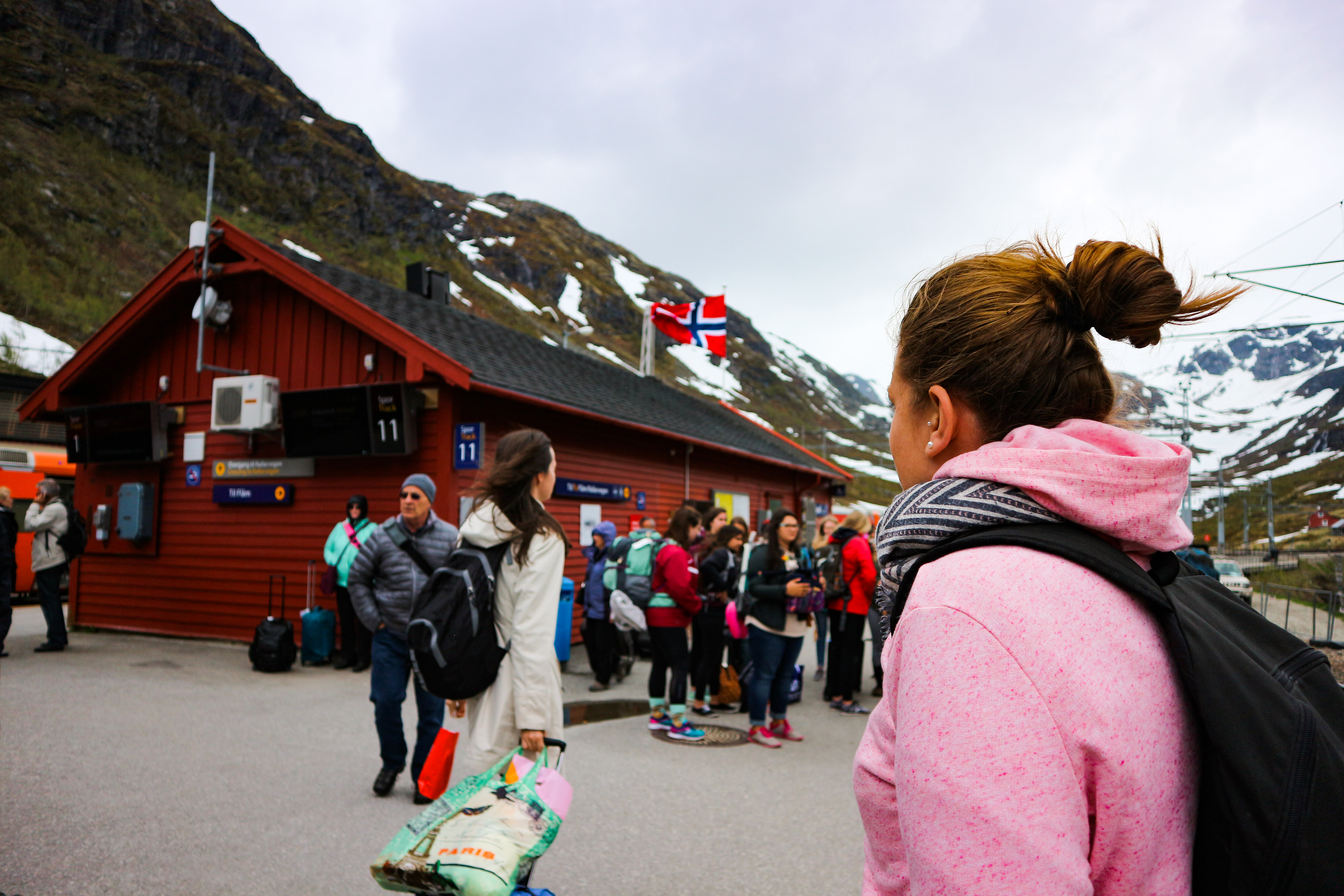Il viaggio da Oslo a Myrdal dura circa 5 ore (ho acquistato i biglietti sul sito delle ferrovie norvegesi) e guardando fuori dal finestrino ci si rende conto di come man mano si sale di quota: si passa da prati verdissimi a montagne innevate, Myrdal infatti è a 867m s.l.m. e anche a giugno è coperta di neve.